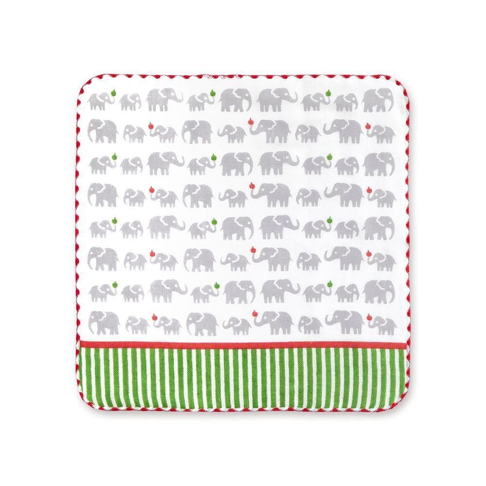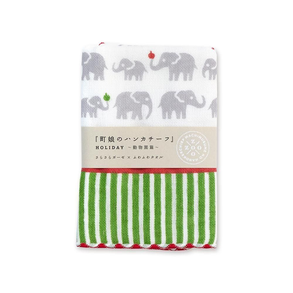 [町娘のハンカチーフ動物園篇]休日は動物園にいきましょう。スケッチブックと色鉛筆もちゃんと持ってね。みんな元気にしてるかな?表面ガーゼ地、裏面タオル地の2枚合わせはんかち。