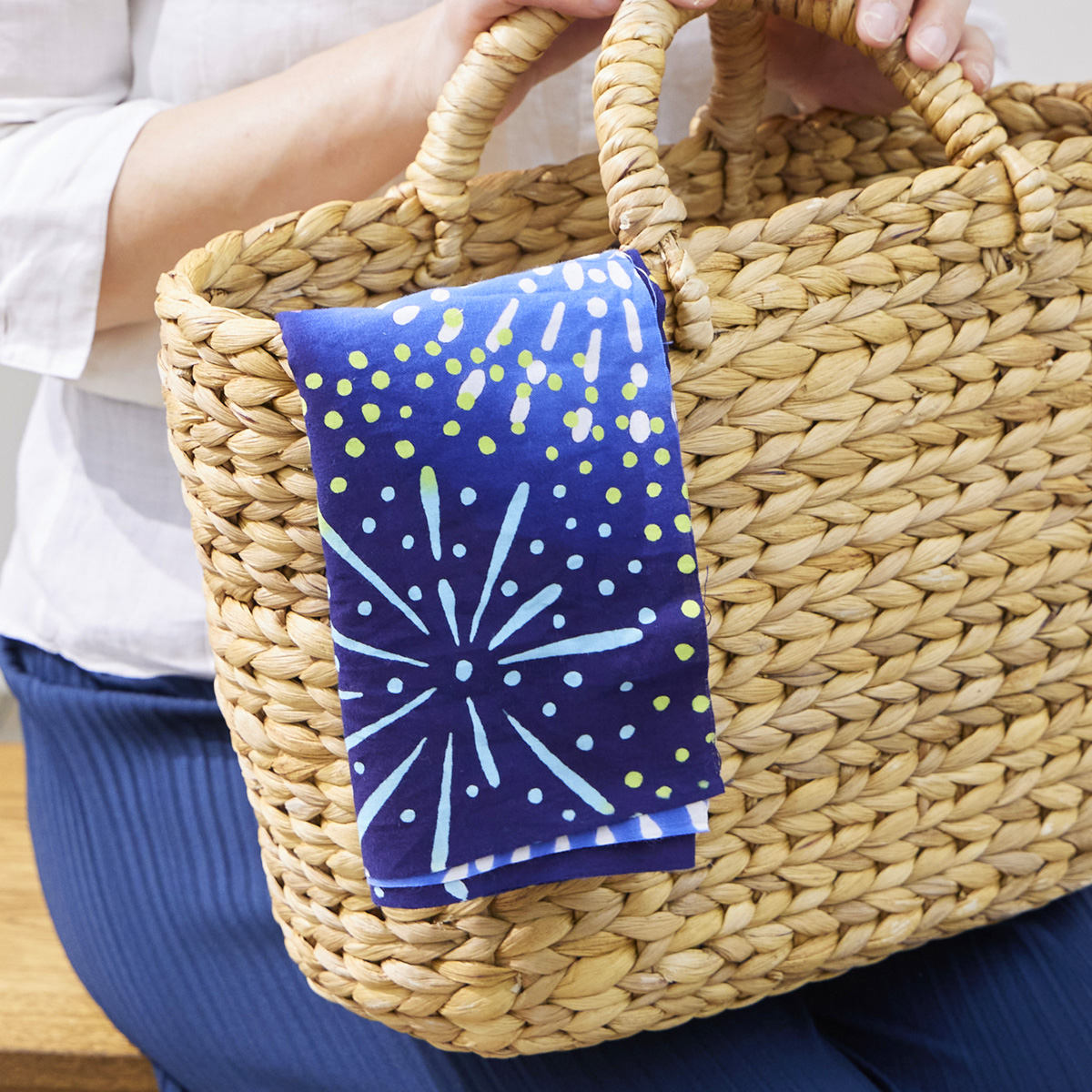夜空を彩る、夏ならではの華やかさを感じる一枚。繊細な模様が広がるデザインは、持つだけでも気分が高まります。バッグに添えたり、贈り物のラッピングとして使うのもおすすめ。特別な日のアクセントとしても活躍してくれます。